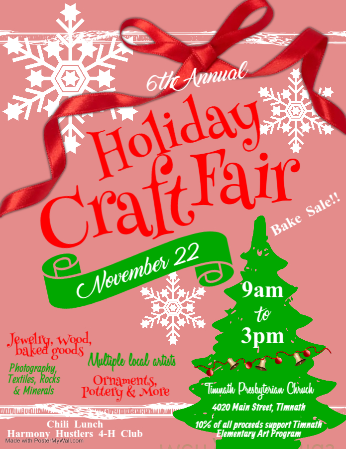 Mark your calendars and spread the word to neighbors and friends! TPC will be hosting it’s 6th annual Holiday Craft Fair and Bake Sale. Saturday, November 22 from 9a-3p at 4020 Main Street in Timnath. There will be multiple local artists there so you can get some Christmas shopping done, be sure to check out the…