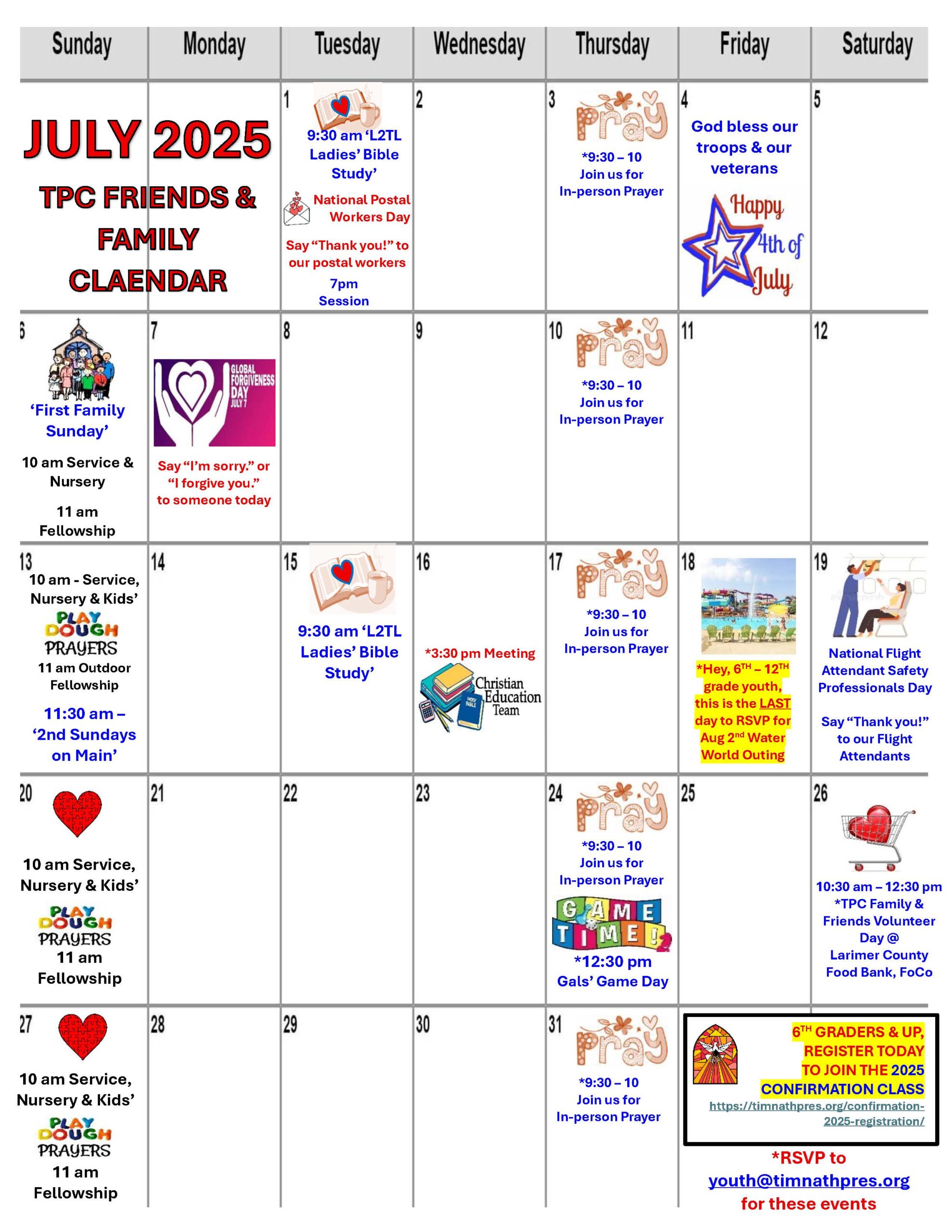 JULY 2025 Friends & Family calendar